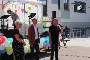 Die offizielle Begrüßung durch Herrn Ufert, dem Schulleiter, markierte den Auftakt zu einem vielfältigen Programm, das die Vergangenheit würdigte und die Zukunft feierte. Im Anschluss daran richteten die Bürgermeisterin Frau Ritter und der Landrat Herr Hänsel einige Worte an die Gäste. Frau Ritter betonte in ihrer Rede die besondere Herausforderung, bei der Sanierung Alt und Neu harmonisch zu vereinen. Trotz der Auflagen des Denkmalschutzes sei es gelungen, ein Gebäudekomplex zu schaffen, der nicht nur funktional und modern ist, sondern auch dauerhaft Bestand haben soll – selbst angesichts sinkender Schülerzahlen. Die bauliche Umsetzung erfolgte im Rahmen einer europaweiten Ausschreibung. Besonders hervorzuheben ist, dass fast ausschließlich Unternehmen aus Radeburg und der näheren Umgebung den Zuschlag erhielten – ein deutliches Zeichen für die starke regionale Verankerung und das Vertrauen in lokale Kompetenz. Ebenso verdient die Finanzierung besondere Anerkennung: Das gesamte Bauvorhaben konnte ohne die Aufnahme von Krediten realisiert werden. Diese schuldenfreie Umsetzung ist beispielhaft für eine nachhaltige und verantwortungsbewusste Investition in Bildung und Infrastruktur.