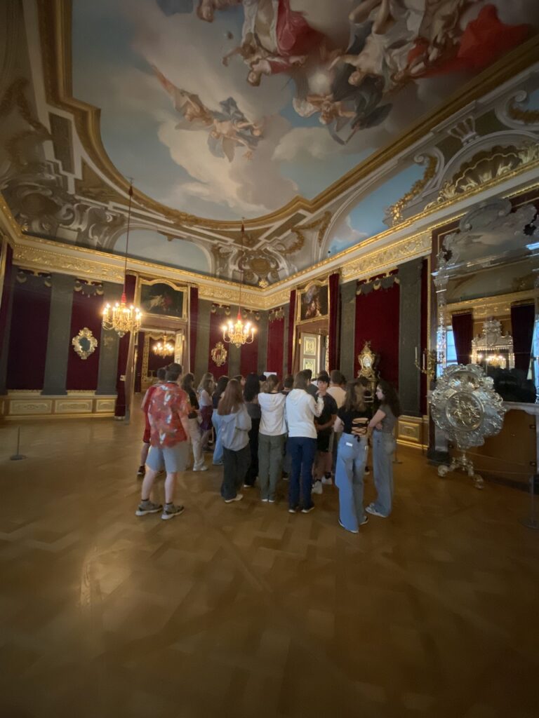 Die erste Schulwoche der achten Klassen stand ganz im Zeichen des Expressionismus. Am Montagmorgen versammelten sich alle in der Aula. Nach einem kurzen Moment der Dunkelheit trat Frau Schreyer, eine unserer Musiklehrerinnen, auf die Bühne und führte in das Thema der Woche ein. Dabei erklärte sie, worum es im Expressionismus geht und wie sich diese Kunstrichtung in verschiedenen Bereichen von Musik bis Malerei zeigt.