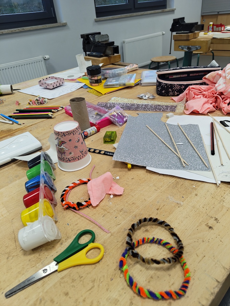 Ab Mittwoch begann die Gruppenarbeit. In verschiedenen Räumen der Schule, manche Gruppen auch in Ateliers oder anderen Orten. Es wurde gemalt, geschrieben, musiziert und recherchiert. Am Donnerstag arbeiteten die Gruppen weiter an ihren Projekten und bereiteten die Präsentationen vor.